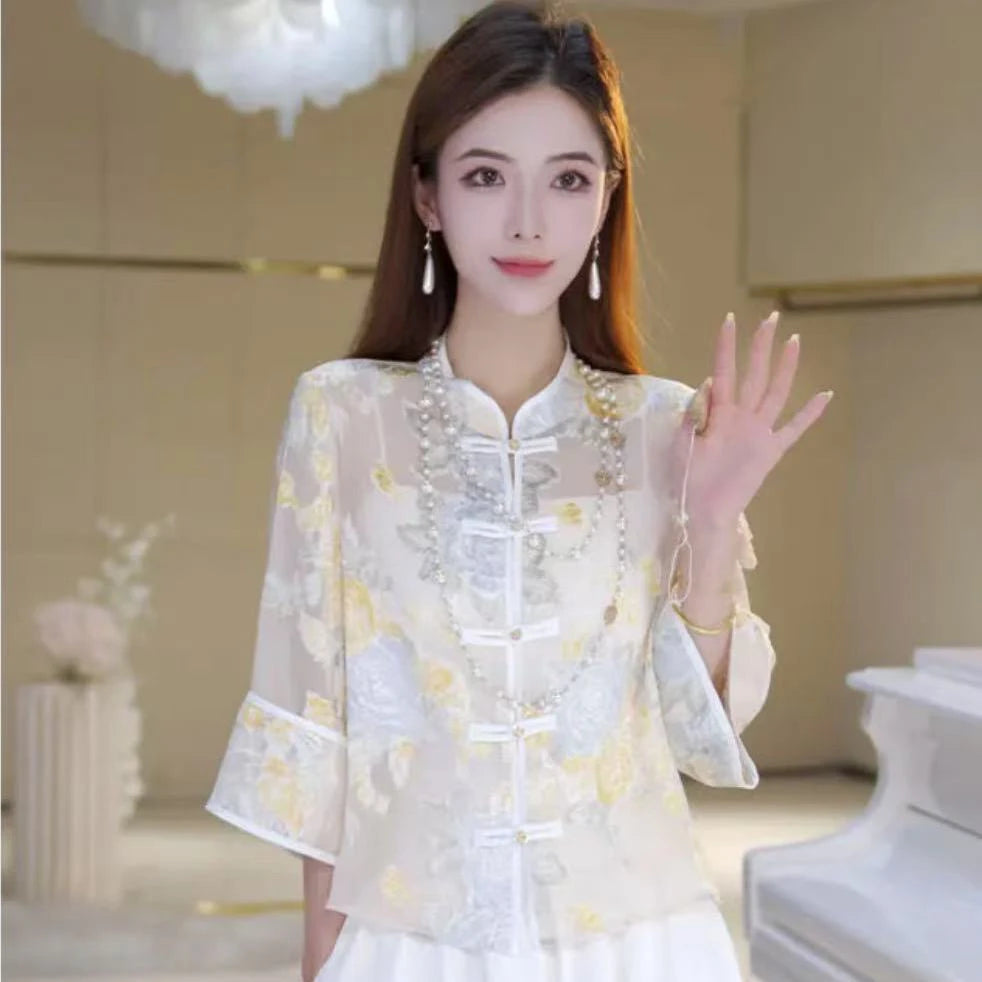 New Chinese Sle Thin awl Coat Button up irt Women Summer National Sle Sun Protection Light Veil Outerwear